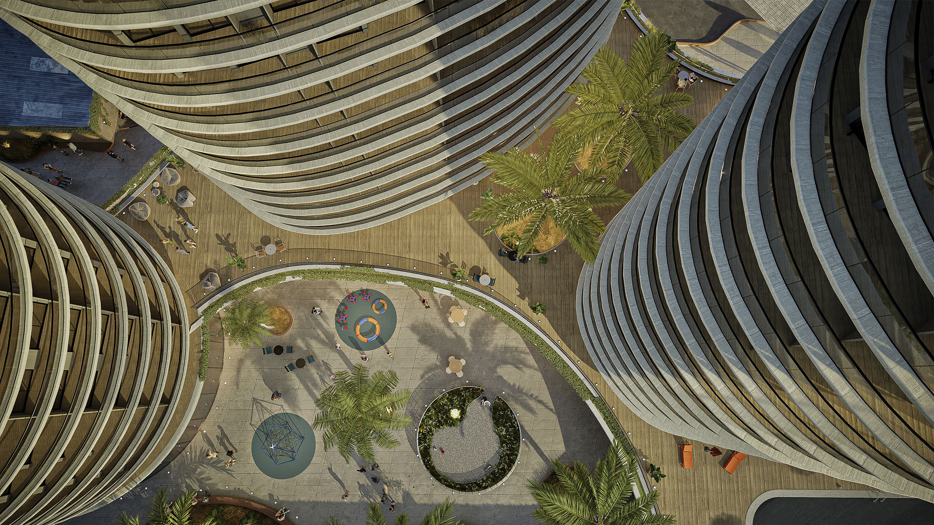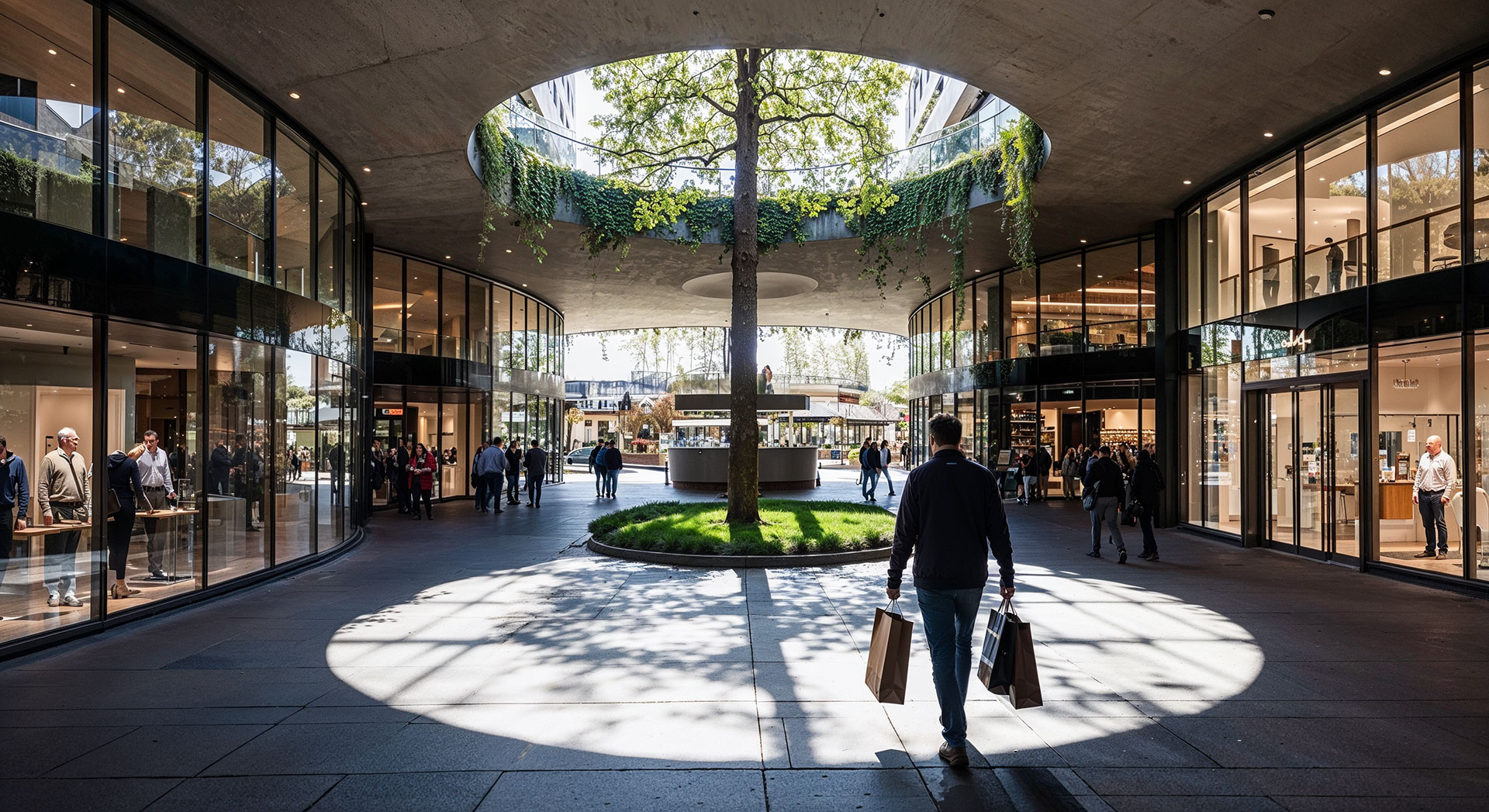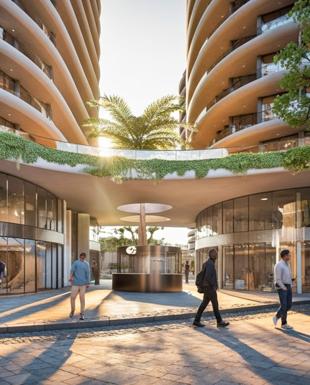 Un zócalo abierto al público transporta a través de superficies techadas por un mini centro comercial de 14 tiendas con áreas de juegos para niños y mascotas convirtiendo el basamento en un punto de encuentro y conveniencia que se nutre de la escala para ofrecer experiencias de primera línea.